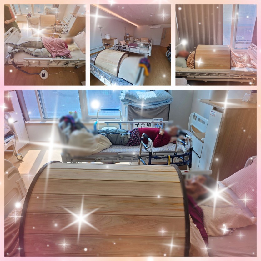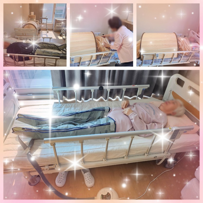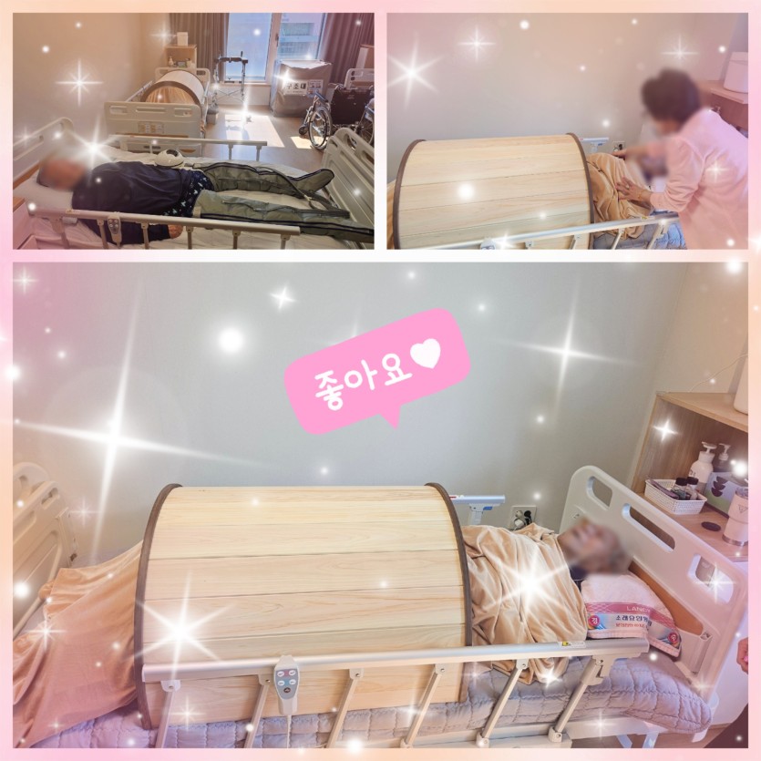 오늘은 편백나무 온열돔 마사지와 공기압 치료기을 이용해 어르신들 마사지을 해드리는 날입니다.
