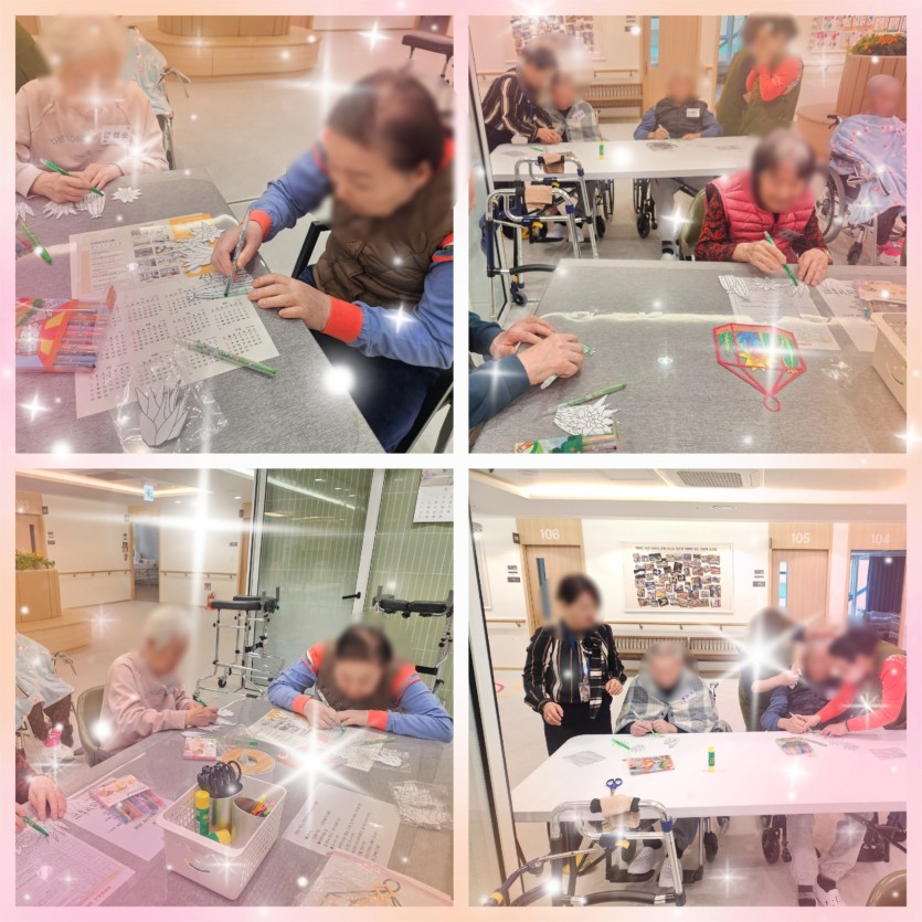 완성된 작품이 빛을 투과하면서 색이 더욱 아름답게 보이도록 구성하여 어르신들이 결과물에 큰 만족감을 느끼셨습니다.^^