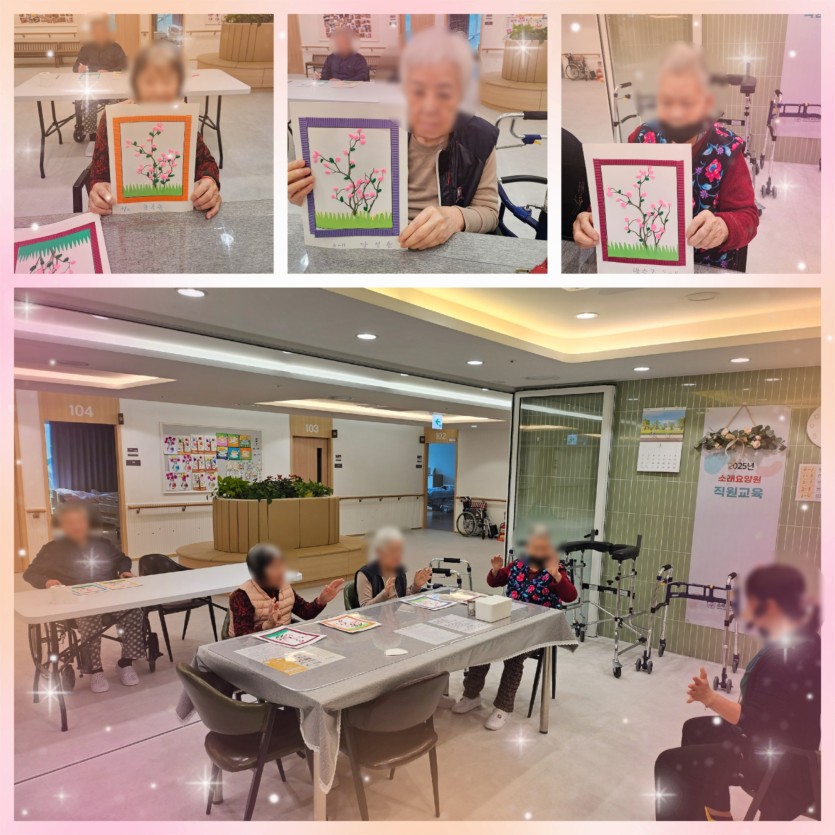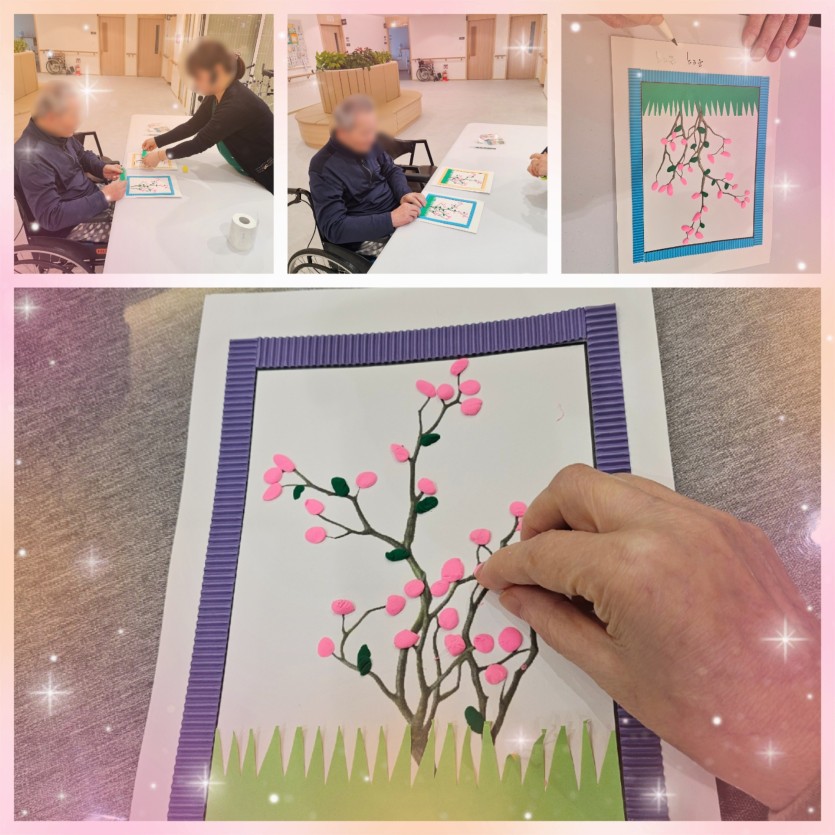 클레이를 이용한 벚꽃나무 꾸미기 수업은 어르신들의 창의력과 손의 감각을 자극하는