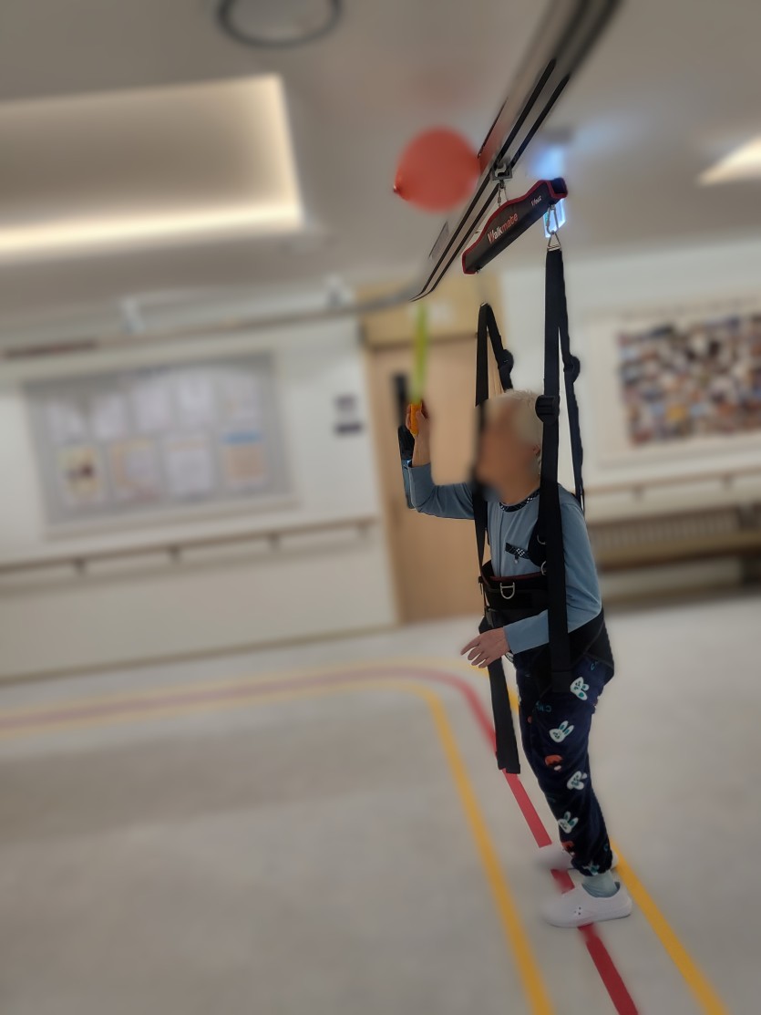 오늘도 변함없이 재활전문기구(워크메이트) 활용 풍선배드민턴 재미나게 했어요^^