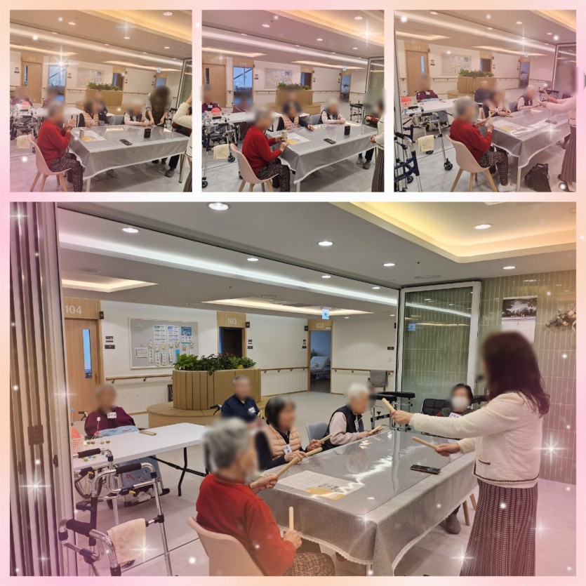 어르신들께서 리듬막대를 활용한 수업에 적극적으로 참여하며 신체 움직임을 통해 활력을 되찾으셨습니다.