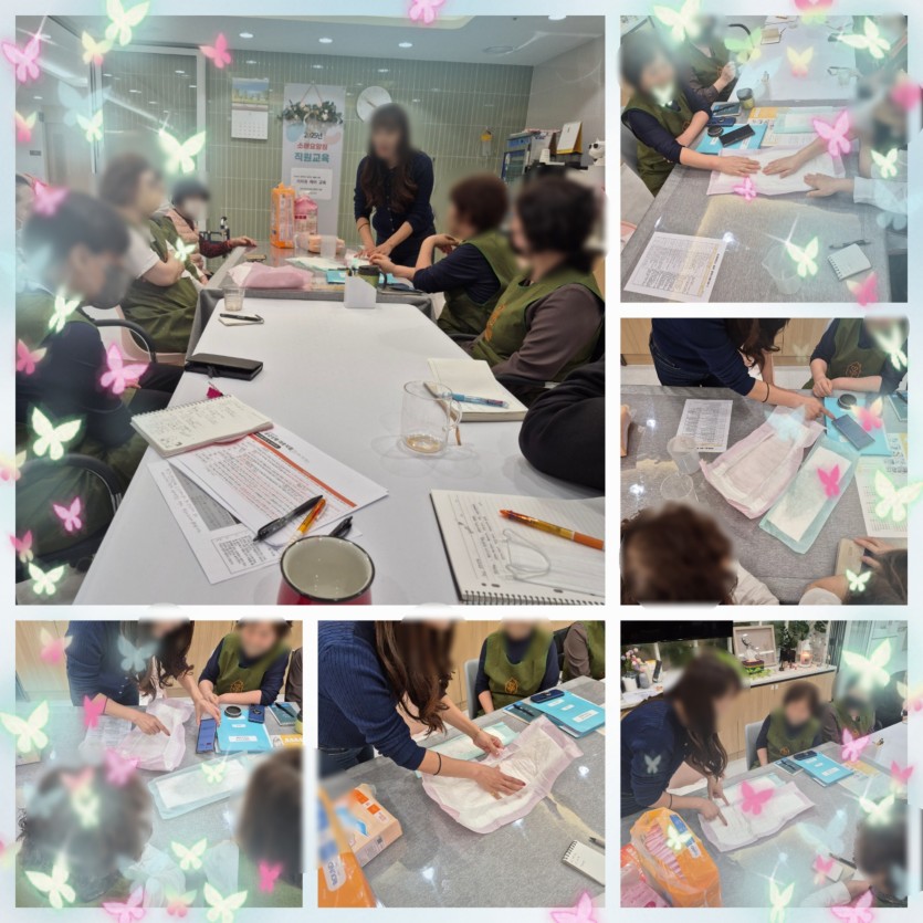 외부전문강사을 초빙하여 기저귀케어 교육을 다 같이 받았습니다.