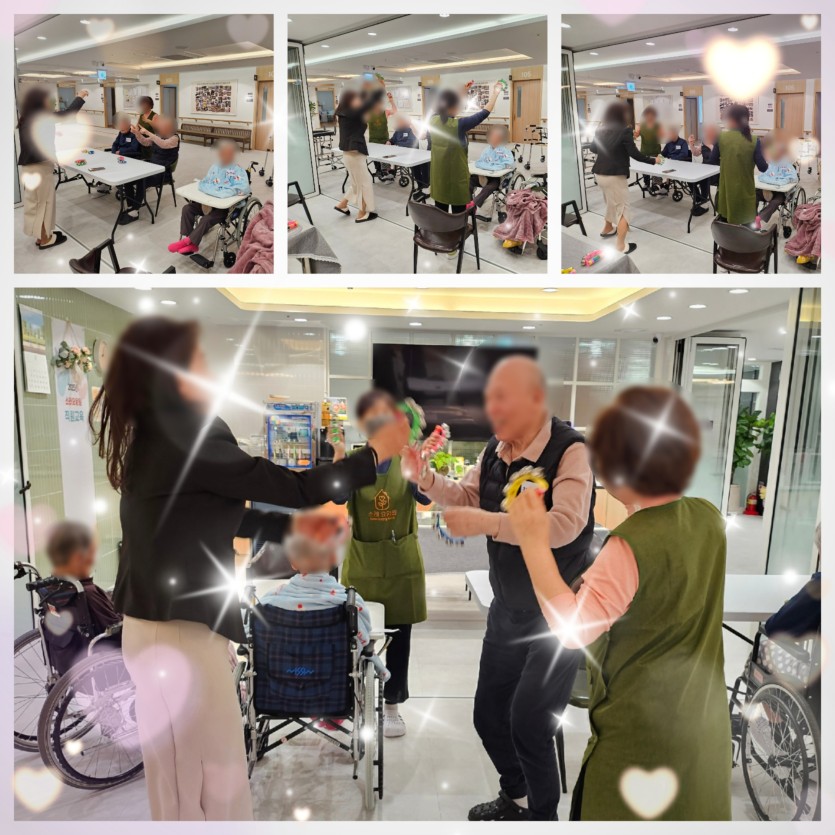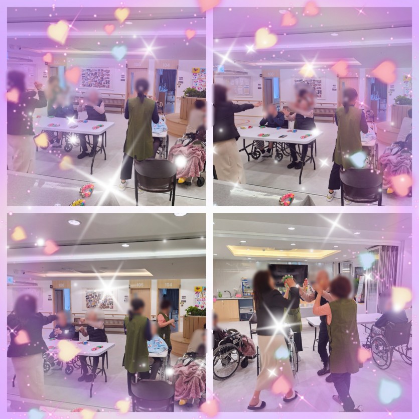 특히, 음악과 함께 진행된 활동에서 웃음이 많이 나왔고, 함께 노래를 따라 부르시며 즐거워하셨습니다.