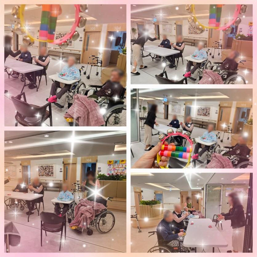 미니탬버린의 경쾌한 소리가 어르신들의 관심을 끌었으며, 박자에 맞춰 함께 움직이면서 즐거워하셨습니다.
